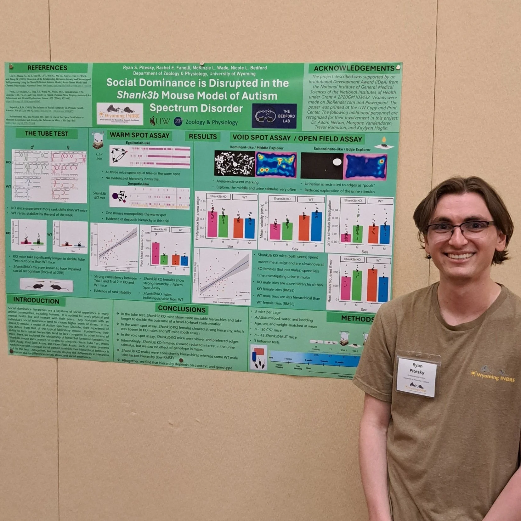 Ryan Pitesky (‘24) presented his research on social dominance hierarchies in Shank3b mutant mice at the recent Wyoming INBRE Spring Research Conference. We’re so proud of his excellent work!